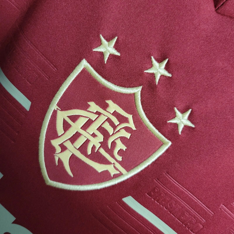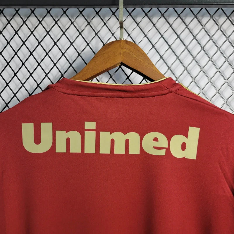 A Camisa III do Fluminense de 2012 é uma peça icônica que celebra o título de Tetracampeão Brasileiro conquistado pelo clube naquele ano. Este uniforme alternativo destaca-se pela cor grená com detalhes dourados, apresentando o escudo centralizado no peito e gola em formato V.