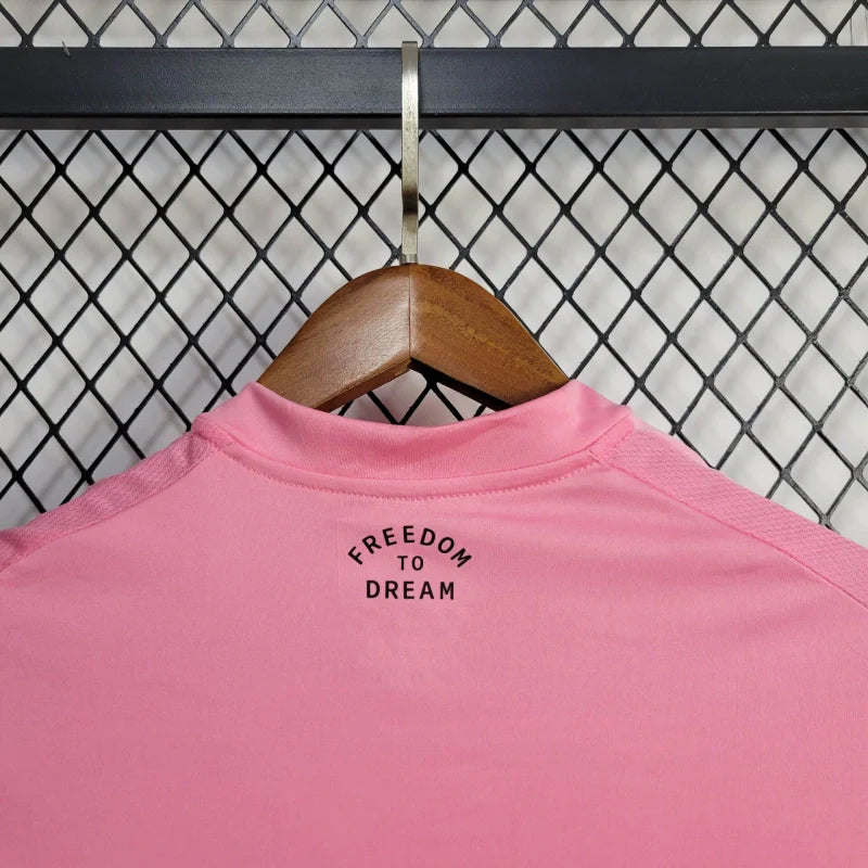 A camisa titular do Inter Miami para a temporada 2025/26, chamada "Euforia", foi lançada recentemente pela Adidas. O design apresenta listras verticais em diferentes tonalidades de rosa, com detalhes em preto, incluindo o escudo do clube, o logo da Adidas, os patrocinadores e as listras nos ombros. Na região da nuca, está inscrita a frase "Liberdade para sonhar".