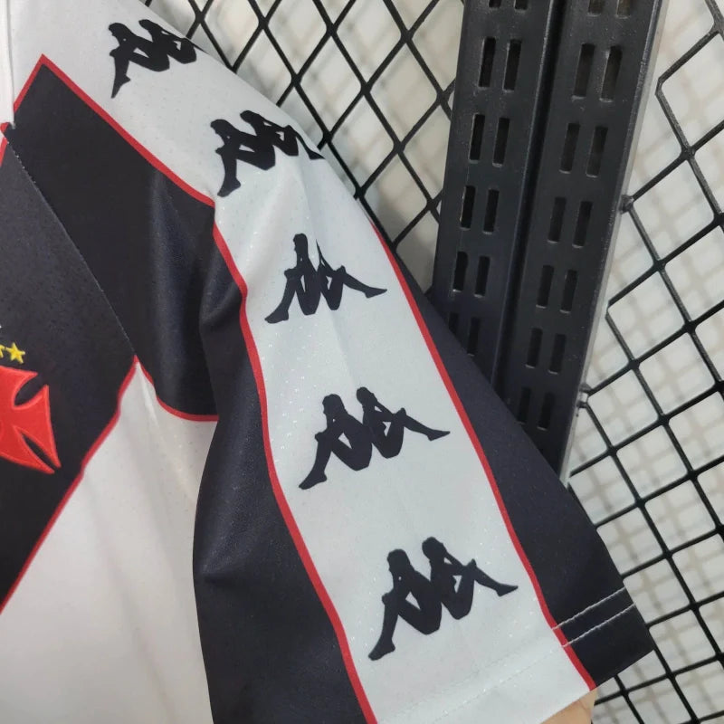 A Camisa 1 Retrô do Vasco da Gama de 1997 é uma réplica do uniforme utilizado pelo clube durante a conquista do Campeonato Brasileiro daquele ano. Produzida pela Kappa, a camisa apresenta a tradicional faixa diagonal preta sobre o fundo branco, com o escudo do Vasco bordado no peito e o logotipo da Kappa também bordado. É confeccionada em 100% poliéster, garantindo conforto e durabilidade.