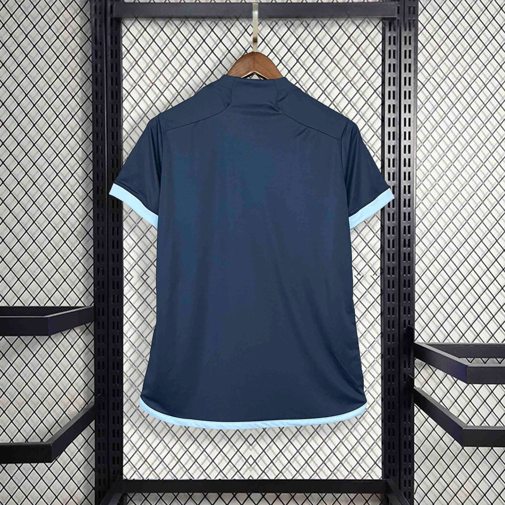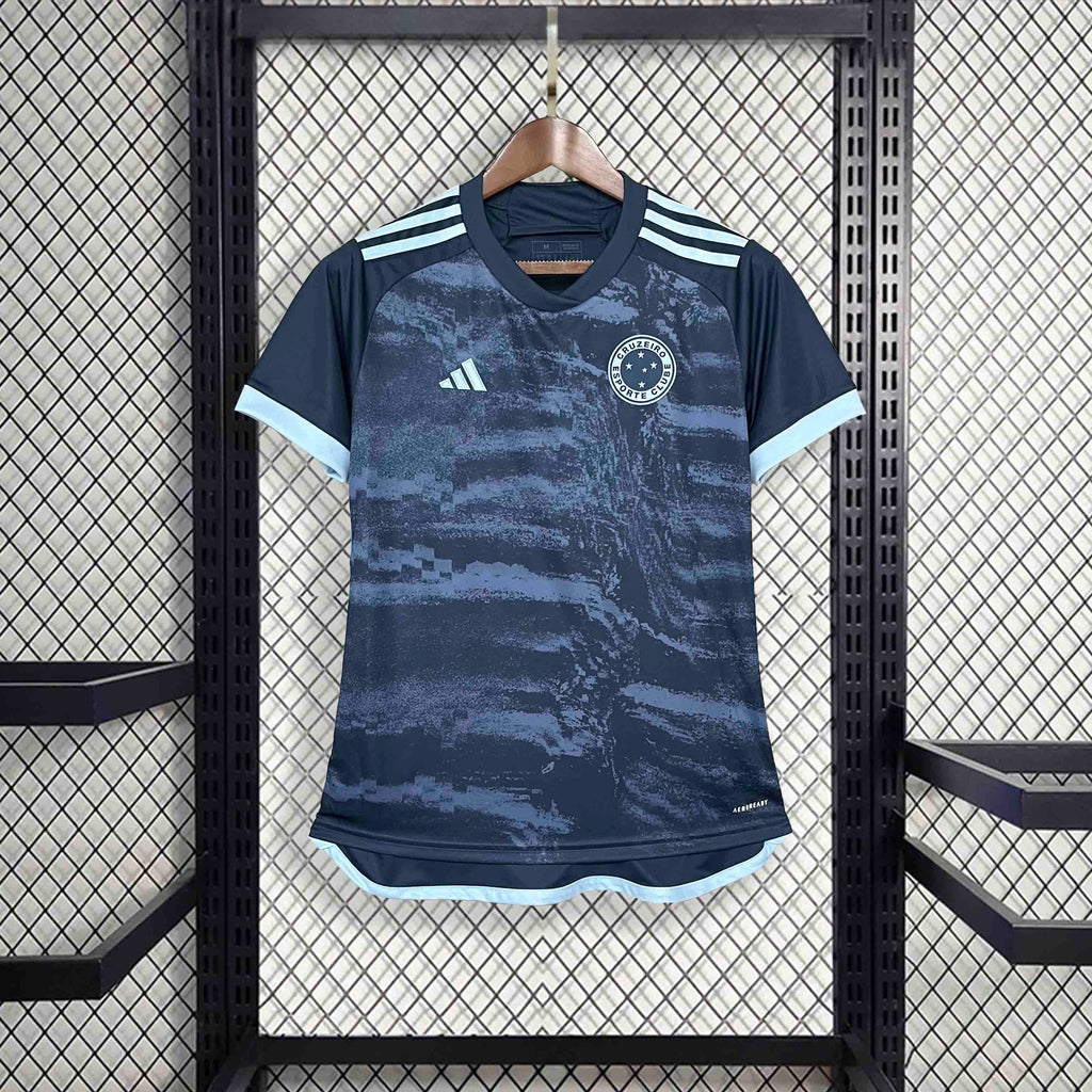A nova terceira camisa do Cruzeiro para a temporada 2024/25, desenvolvida pela Adidas, apresenta um design inspirado nas montanhas de Minas Gerais. O manto possui uma tonalidade azul petróleo com detalhes em azul celeste, refletindo as paisagens naturais do estado. Além disso, a camisa incorpora a tecnologia AEROREADY, que remove o suor da pele, garantindo conforto e secagem rápida durante o uso.