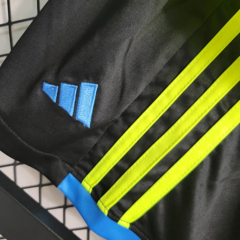 Inspirado nas ruas de Islington, o bairro que viu nascer o clube, o conjunto apresenta um design arrojado em verde vibrante com padrões gráficos urbanos em tons escuros. O escudo do Arsenal surge em preto monocromático, tal como os logótipos da Adidas e dos patrocinadores, reforçando um visual moderno e cheio de estilo.