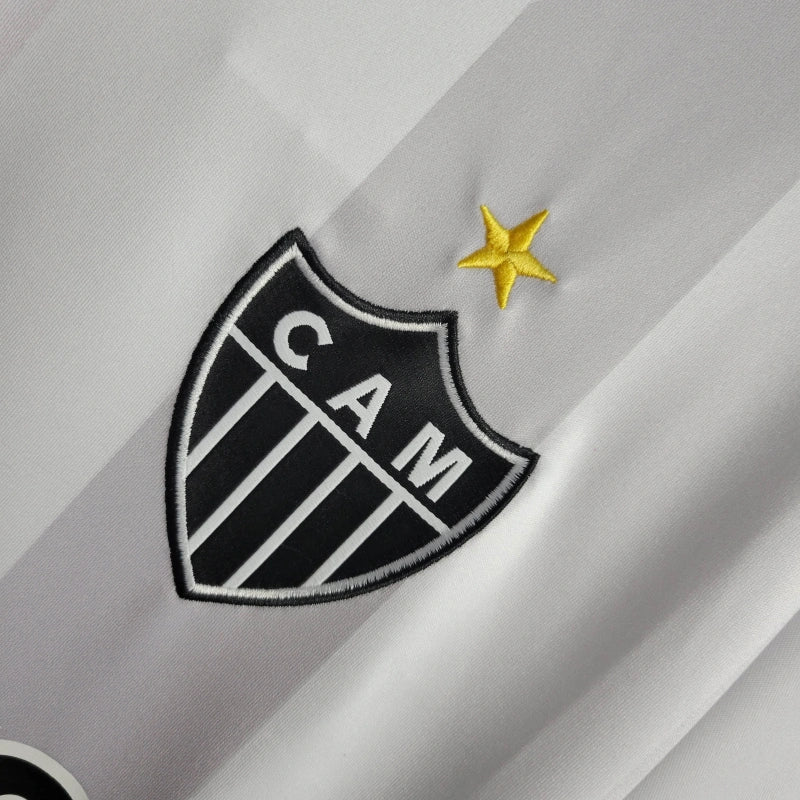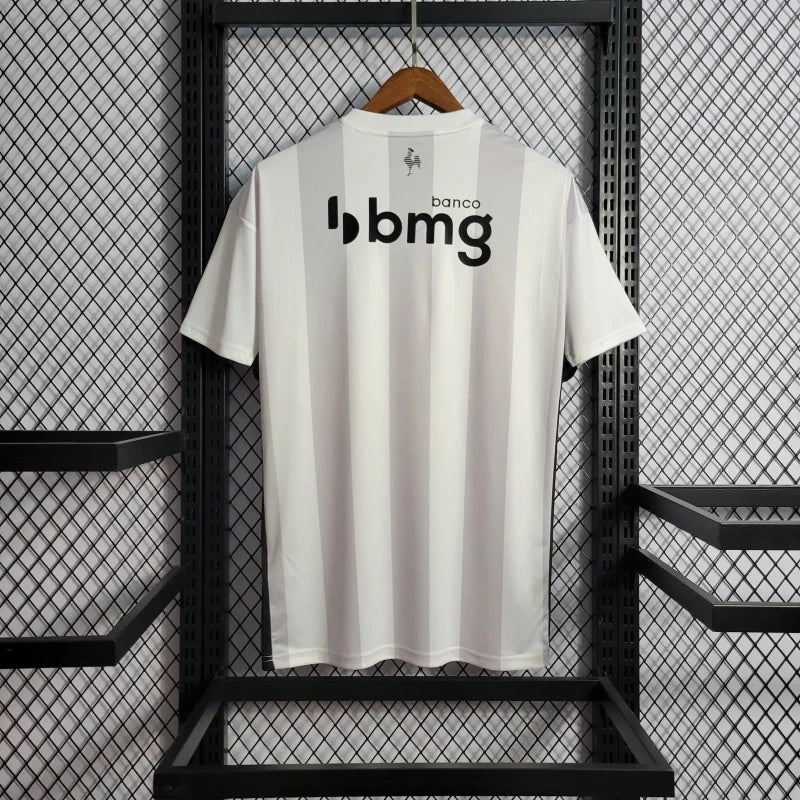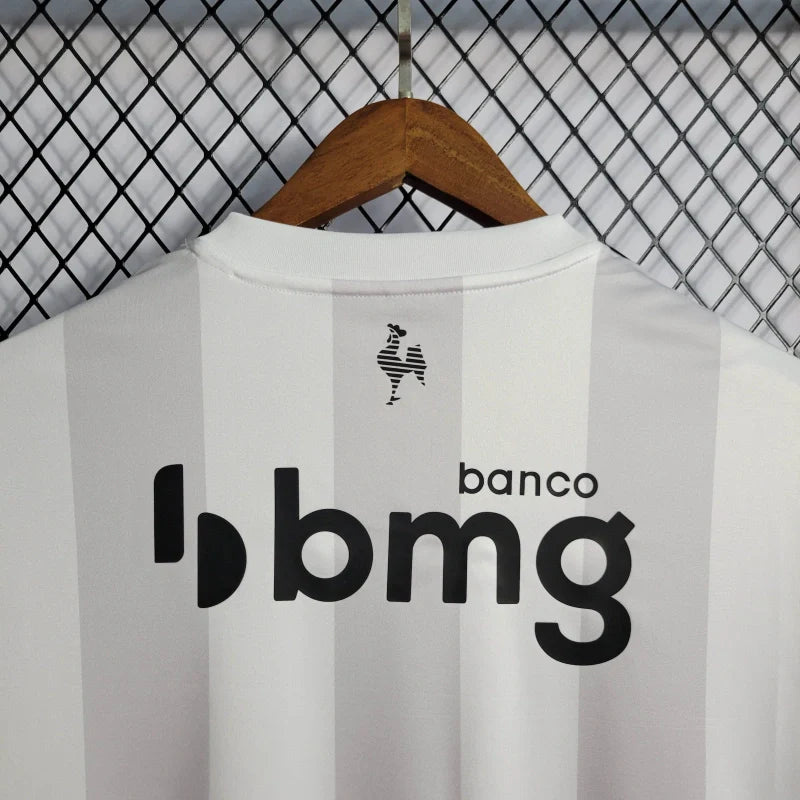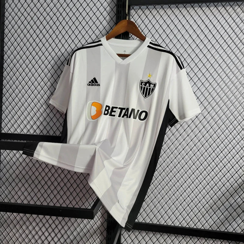 A Camisa 2 do Atlético Mineiro temporada 2022/23, apresenta um design elegante com listras verticais em branco e cinza claro, complementadas por detalhes em preto nos ombros e mangas. O escudo do clube está bordado no peito, ao lado do logotipo da Adidas, e inclui os patrocinadores oficiais na frente e nas costas. Confeccionada em poliéster de alta qualidade, a camisa utiliza a tecnologia Aeroready, que auxilia na absorção do suor, proporcionando conforto tanto dentro quanto fora dos campos.