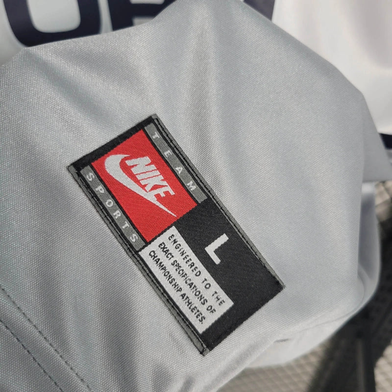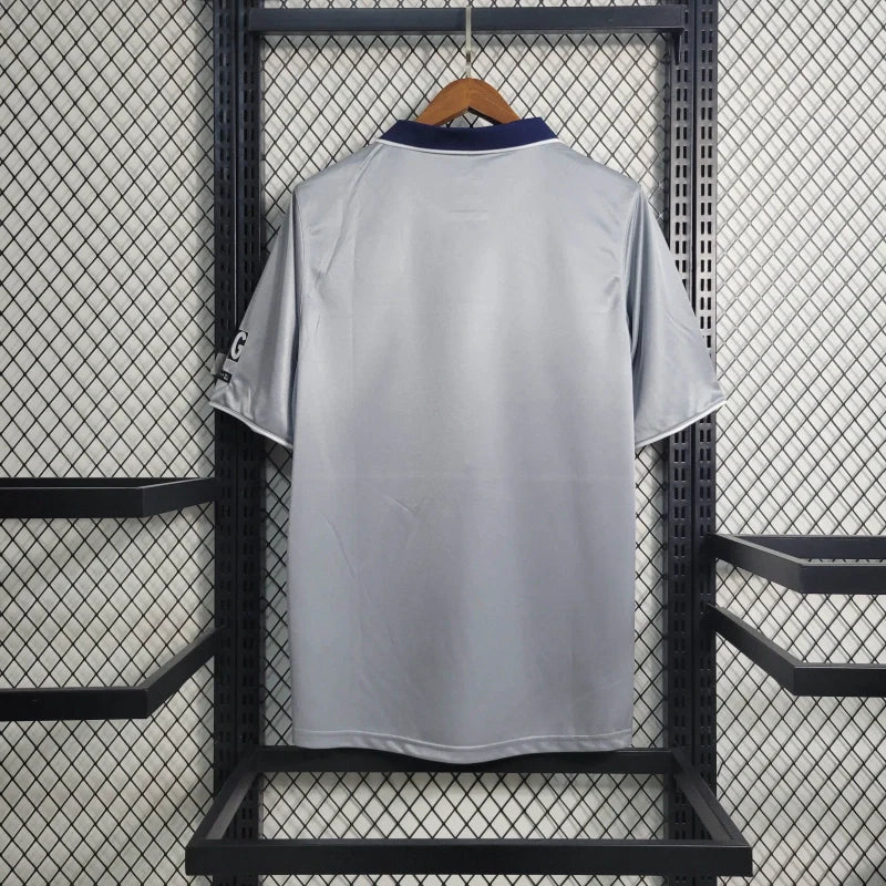 Reviva o legado de uma era icônica do PSG com esta versão retrô da camisa reserva da temporada 1999-2000 (também usada em 2000-2001), confeccionada pela Nike. O visual se destaca pelo tom cinza elegante com uma faixa horizontal branca e detalhes em azul, incluindo o patrocínio Opel da época