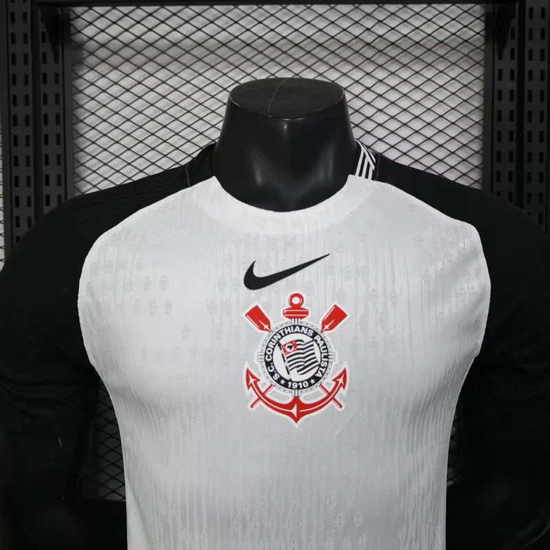 A nova Camisa 1 do Corinthians 2025/26 – Versão Jogador é mais que um uniforme: é uma homenagem à glória eterna do Mundial de 2000. Ela resgata o visual icônico daquela conquista histórica, com design predominantemente branco, mangas pretas e escudo centralizado no peito — igual ao usado na final contra o Vasco.