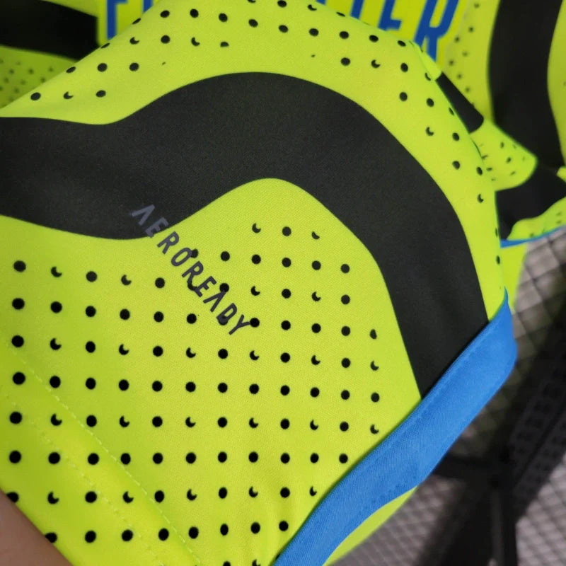Produzida pela Adidas, a peça apresenta um tom amarelo vibrante como base, com um padrão gráfico abstrato em cinzento escuro que representa os mapas das ruas de Islington, o bairro do Arsenal. O escudo do clube surge em preto monocromático, em harmonia com os restantes detalhes, conferindo um look urbano e arrojado.