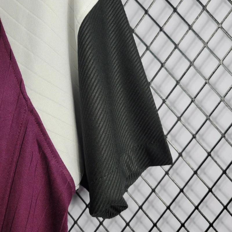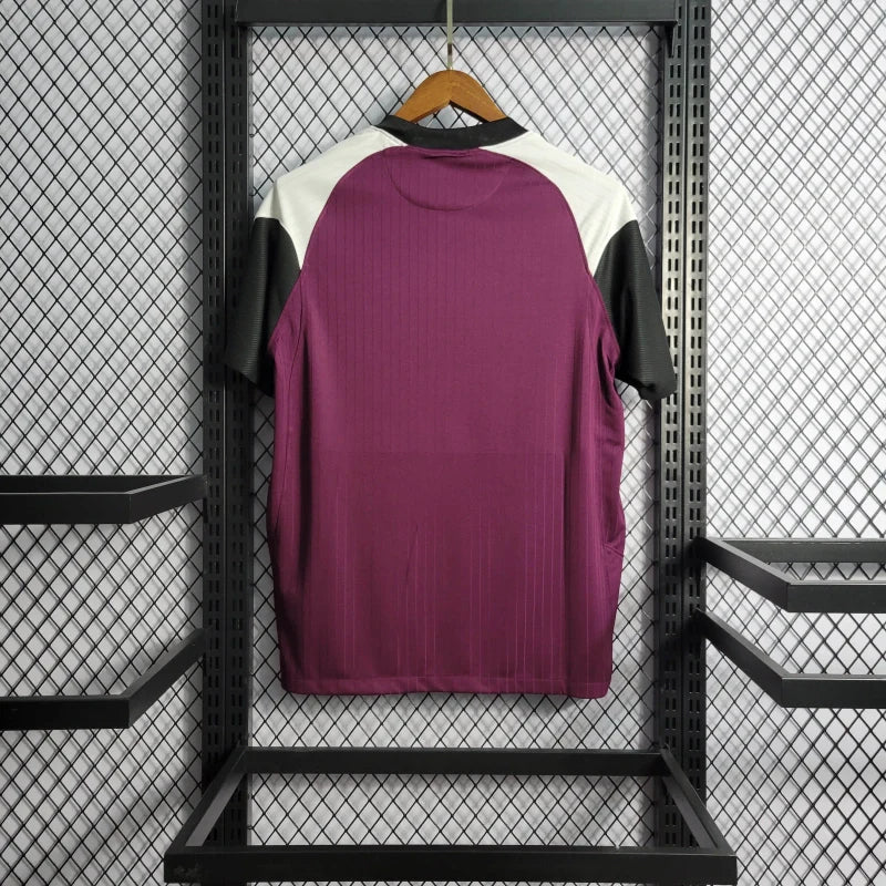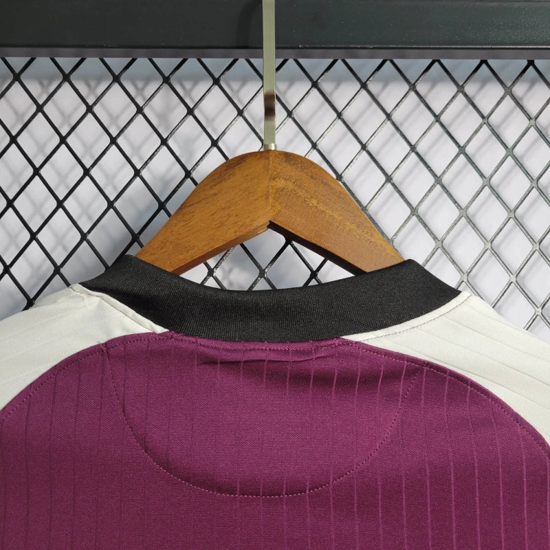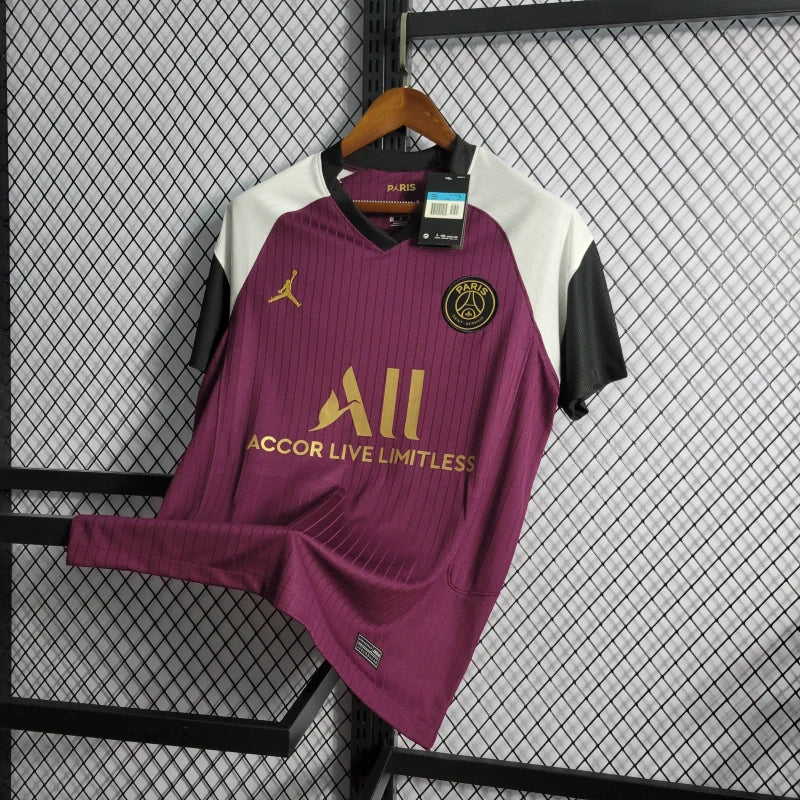 A Camisa 3 do Paris Saint-Germain 2020/21, fruto da colaboração entre o PSG e a Jordan Brand, é uma peça que une estilo urbano e tradição esportiva. Inspirada na temporada em que o clube comemorou seu 50º aniversário, esta camisa apresenta um design predominantemente vinho, com detalhes em branco e preto nas mangas e dourado nos emblemas, simbolizando uma era de conquistas e ousadia.