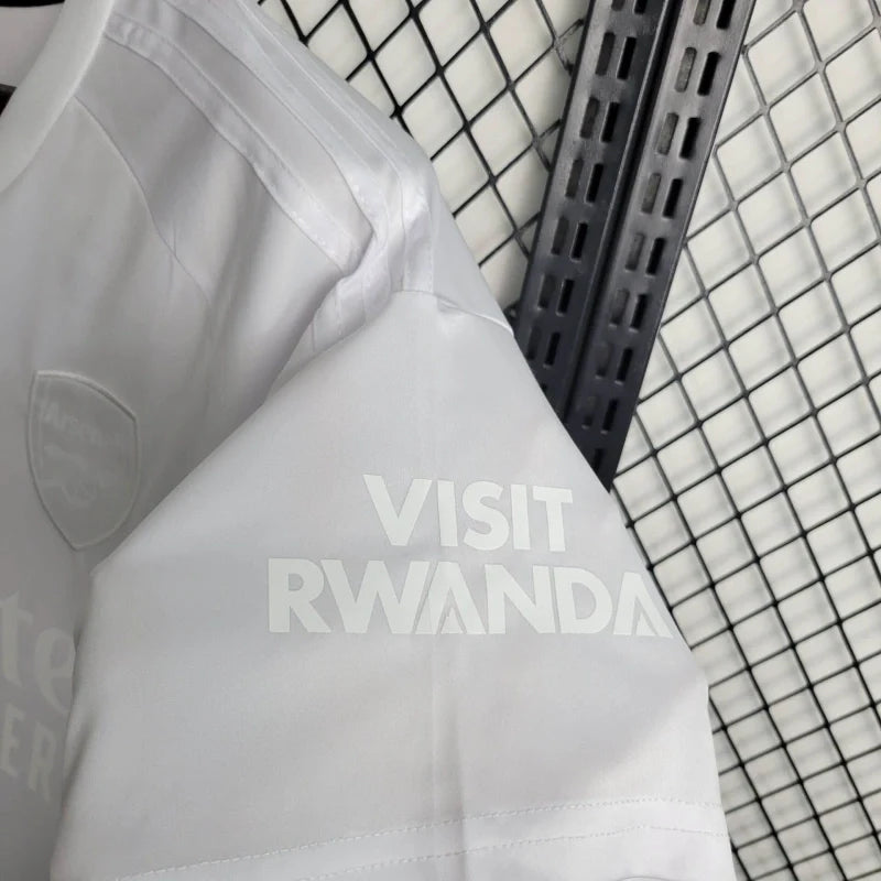 A "No More Red" é uma iniciativa contínua do Arsenal e da Adidas, que pelo quarto ano consecutivo lança uma camisa totalmente branca para destacar a campanha contra a violência juvenil. O design "whiteout" simboliza a remoção do vermelho, cor tradicional do clube, em um apelo visual contra o derramamento de sangue nas comunidades locais.