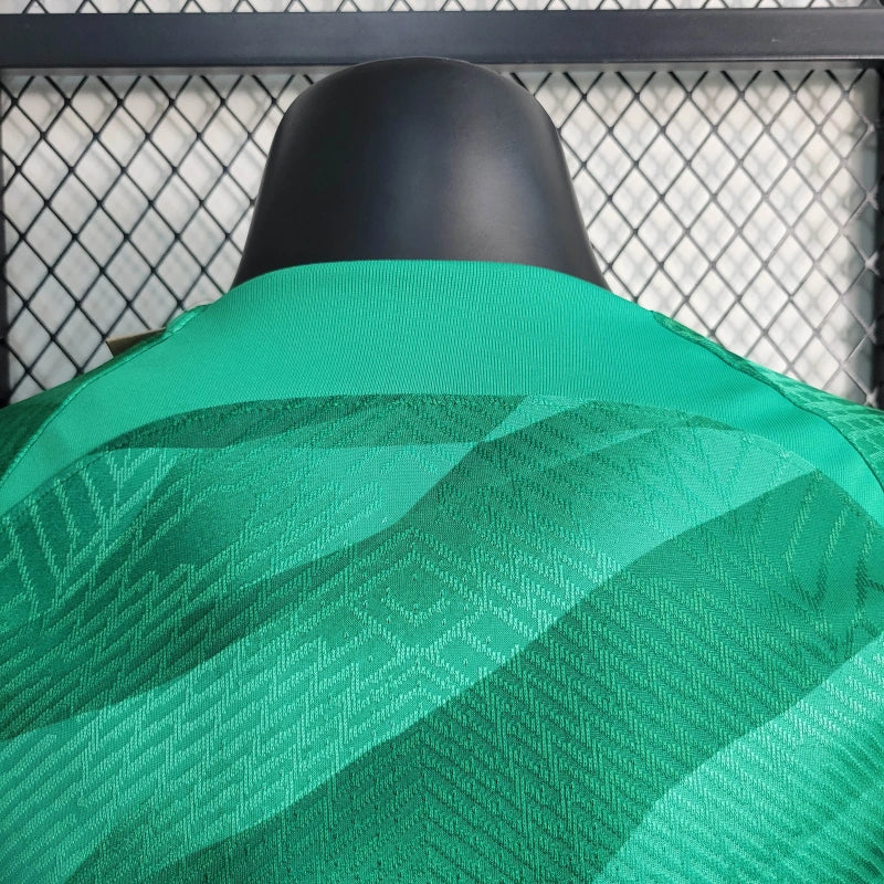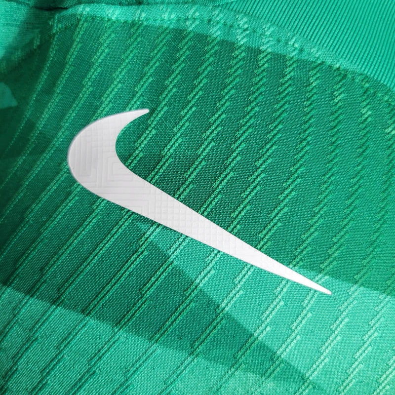 Apresentando um tom vibrante de verde, conhecido como "Stadium Green", esta camisa se destaca pelo seu visual arrojado. O design inclui padrões tonais que adicionam profundidade e dinamismo à peça. O escudo do Paris Saint-Germain e o logotipo da Nike estão aplicados no peito, conferindo autenticidade e orgulho ao torcedor.