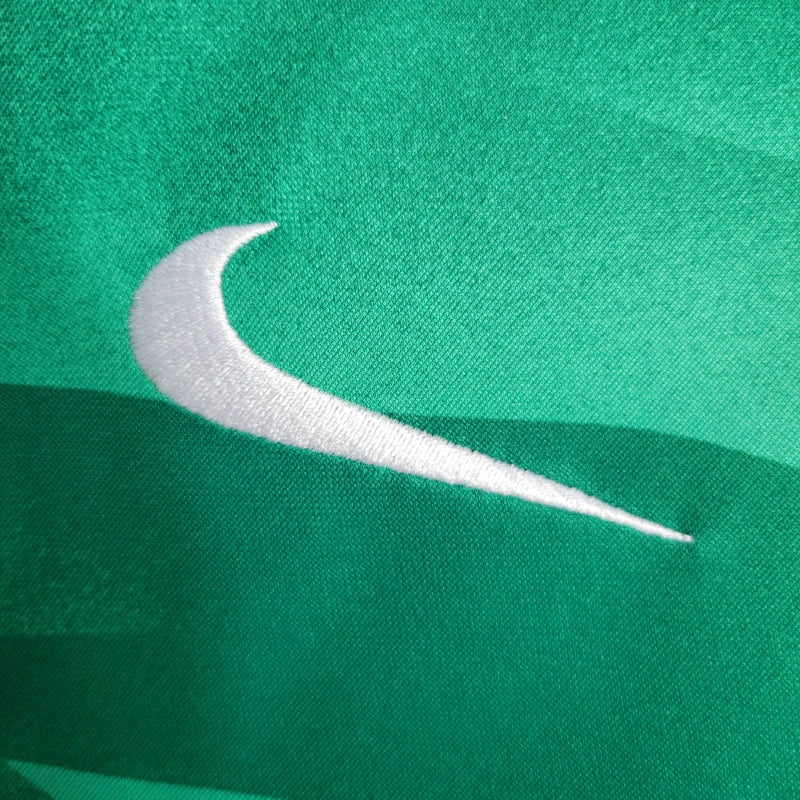 Apresentando um tom vibrante de verde, conhecido como "Stadium Green", esta camisa se destaca pelo seu visual arrojado. O design inclui padrões tonais que adicionam profundidade e dinamismo à peça. O escudo do Paris Saint-Germain e o logotipo da Nike estão aplicados no peito, conferindo autenticidade e orgulho ao torcedor.