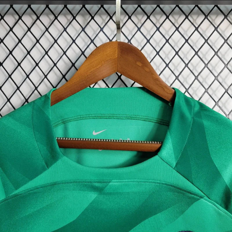 A Camisa de Goleiro Paris Saint-Germain 2023/24 – Verde, desenvolvida pela Nike, é uma peça que combina performance esportiva e estilo moderno, ideal para torcedores que desejam vestir-se como os craques do PSG.