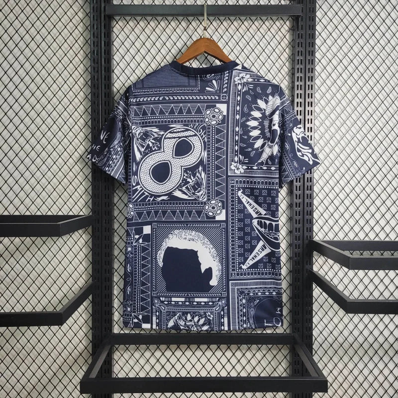 A Camisa Pré-Jogo Arsenal Ian Wright 2024, desenvolvida pela adidas, é uma edição especial que homenageia a lenda dos Gunners, Ian Wright. O design apresenta gráficos marcantes em preto e branco com detalhes dourados, incluindo o escudo do clube e o logotipo da adidas. A estampa é inspirada em momentos icônicos da carreira de Wright, celebrando seu legado no Arsenal.